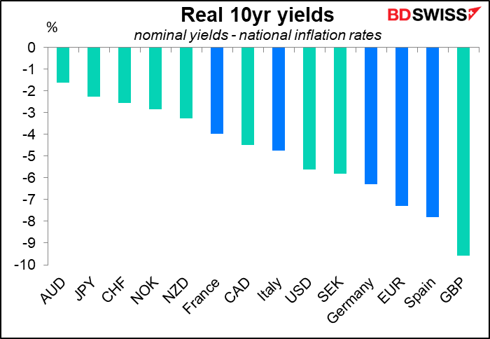 Peripheral Europe stacks up a bit better on a real yield basis, but still not compelling. And Germany, the highest-rated European borrower, looks just as unattractive on a real basis as on a nominal basis.