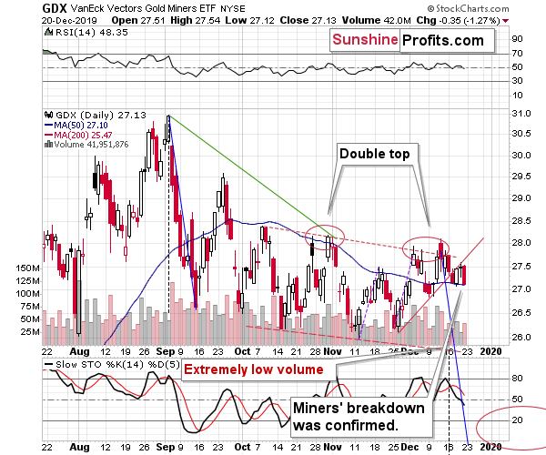 On Friday, miners confirmed their breakdown below the rising support line. It’s hard to imagine a clearer sign that silver’s breakout should not be trusted.