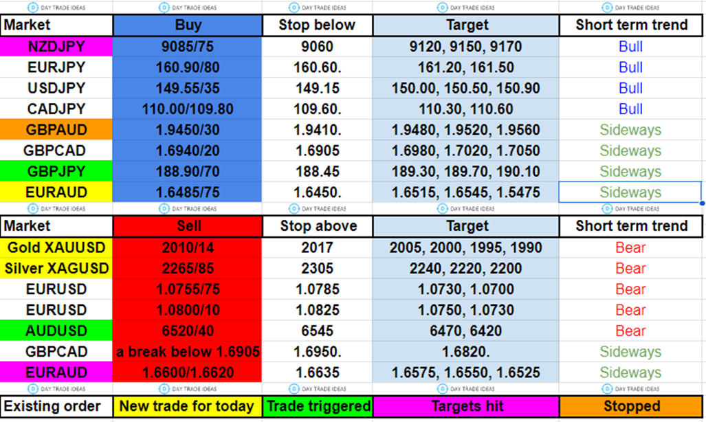 Trade ideas for Gold, Silver and Forex