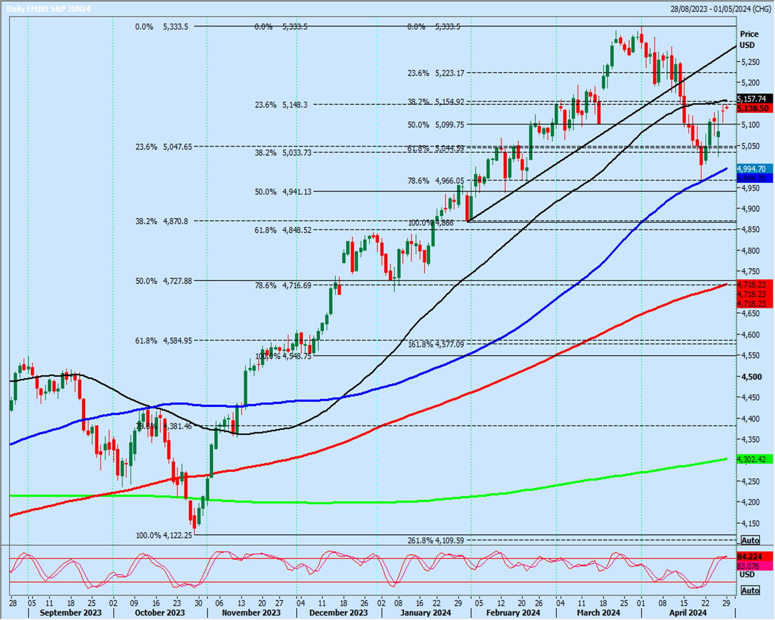 Emini S&P has recovered all the losses & bounced 100 points to 5134.