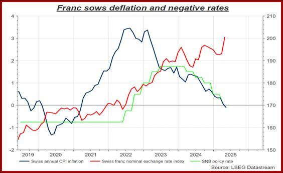 All the same, “While the SNB's trade-weighted franc index is dominated by a 42% euro weighting, the dollar still commands a 14% share and the dollar, yuan, yen and sterling combined account for about a third of the total. And so a sharp weakening of the dollar, dollar-priced commodities and other dollar-linked currencies still packs a punch for Switzerland regardless of relative stability on the euro.”