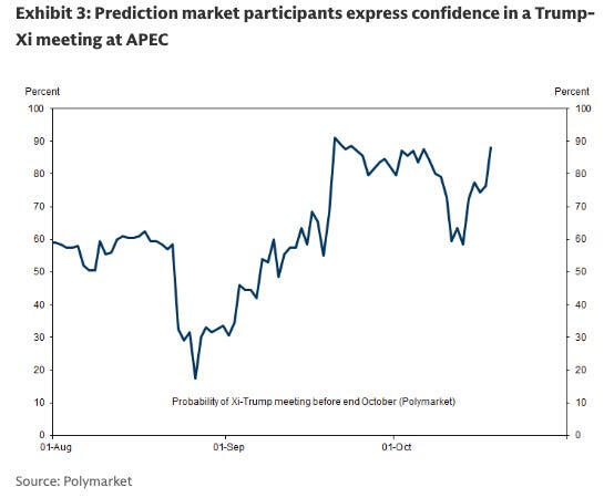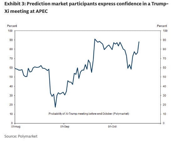 Prediction markets may price in only an 8% chance of tariffs taking effect, but markets have a habit of underpricing political vanity. Both men need a win. Trump, a campaign flourish; Xi, a proof of power to his domestic audience. That’s a combustible setup for the world’s logistics spine, and traders know it. Behind every calm futures quote, there’s a trader whispering: “What if they mean it this time?”