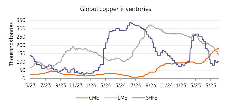 Source: LME, SHFE, CME Group, ING Research