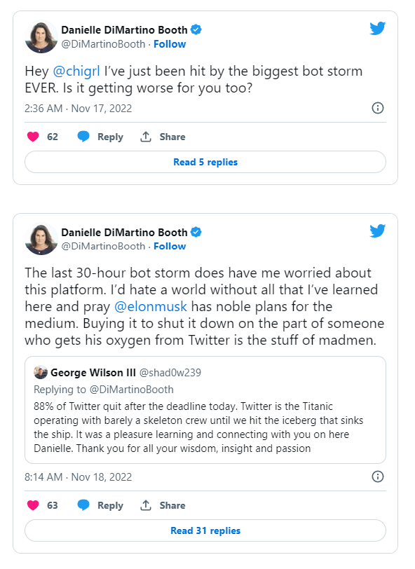 I am not the only one. Danielle DiMartino Booth has been hit by a Bot Storm.