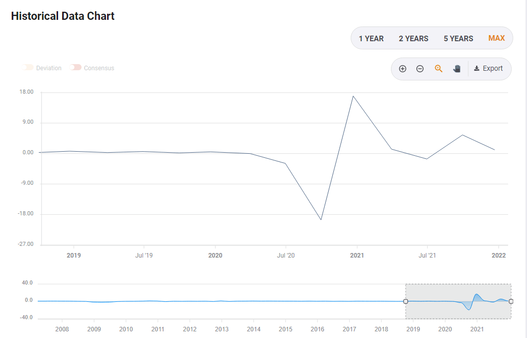 A quarterly increase of 1.5% or higher would boost GBP/USD, showing that the economy is still expanding quickly and implying a quicker pace of rate hikes from the Bank of England. Such a scenario seems likely given the overly downbeat forecasts.