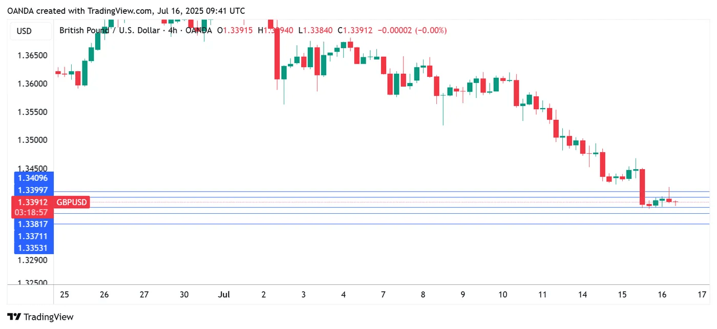 The British pound has stabilized on Wednesday and is trading at 1.3389 in the European session, up 0.07% on the day. This follows a four-day losing streak in which GBP/USD dropped 1.5%. On Tuesday, the pound fell as low as 1.3378, its lowest level since June 23.