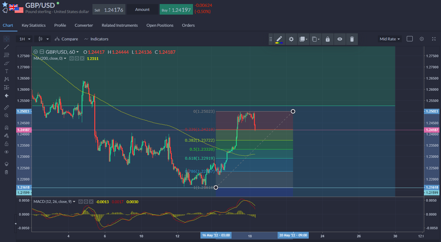 Sterling is weaker this morning too after a solid three-day run against the dollar. GBPUSD trades at 1.2420 after running into horizontal round number resistance at 1.25, just finding a bit of support on the 23.6% retracement of the recent run.