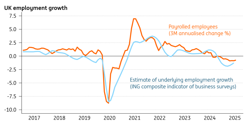 The UK jobs market is undoubtedly cooling, though a more modest fall in payroll employment suggests that the worst may be behind us, following big tax and Living Wage hikes. Better news on wage growth suggests the Bank can still afford to cut rates in November, though after last week's hawkish meeting, this call has become less clear-cut.