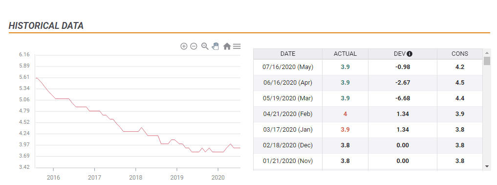 Average earnings are set to remain at low levels. Including bonuses, wages are projected to have dropped by 0.8% in June, worse than -0.3% in May. Excluding them, a meager growth rate of 0.4% is forecast, down from 0.7% previously.