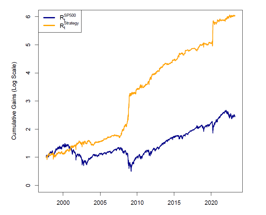 I have come across enough of these types of anomalies to know they are a thing and are persistent. The strategy achieves a Sharpe Ratio of 0.94 versus the SP500 of 0.51.