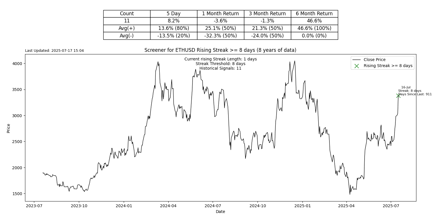 Ethereum is up 8 days in a row.
