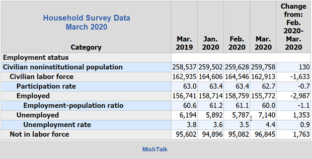 - Household Survey uncertainties: See The BLS FAQ on the Impact of the Coronavirus Pandemic on the Employment Situation for March 2020