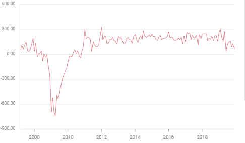 Job creation in the US economy has fallen from its exceptionally high levels of 2018 but gives no indication of having run its course.