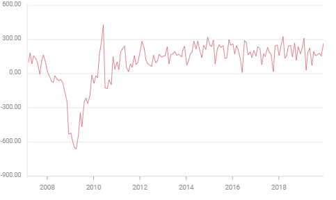 Even the manufacturing sector, whose overall and employment indexes have been in contraction for five months through December has created jobs throughout 2019. The 12-month moving average dropped from 22,000 in January to 11,000 in September, 4,100 in October and 6,000 in November. Factories are forecast to add 5,000 job in December.