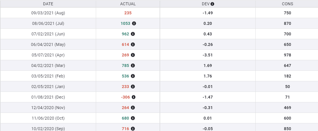 Finally, last month, US payrolls fell by 818,000 to 235,000. The ADP result for August rose slightly to 374,000 from the above 326,000.