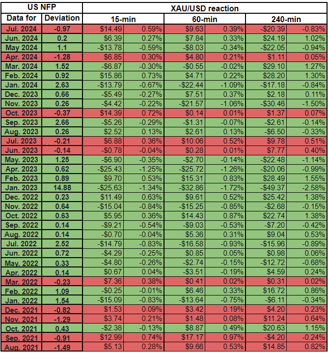 US August Nonfarm Payrolls Preview: Analyzing Gold price reaction to NFP surprises