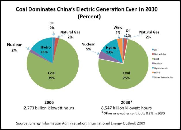 The surplus of electricity is also a result of cheap coal supplies – not just renewables. A report by the Energy Information Administration showed that even by 2030, coal would account for around 75% of China's electricity production, with hydroelectric power accounting for 13%.