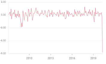 Purchases of store based goods saw the largest fall. Automobile dealerships, the majority of which are closed across the country, sold 25.6% fewer cars, furniture and home furnishings store receipts dropped 26.8% and restaurant and bar bills declined 26.5%.