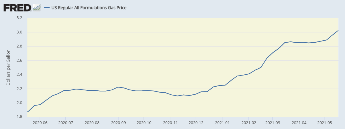 The nationwide average price of a gallon of regular gas has jumped 43% in seven months, from $2.11 on November 2, the day before the 2020 presidential election, to $3.03 on May 17. In the same period the BCOM index climbed 27%.
