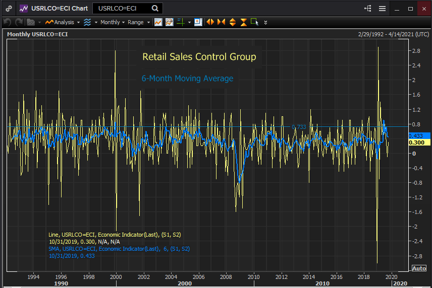 The retail sales control group which is the Bureau of Economic Analysis’ GDP consumption component had a six month average of 0.433% in October and 0.717% in August. Excluding the anomaly of 0.9% in June that was a product of distorted reporting around the January government shutdown that was the best six months for this measure in 16 years.