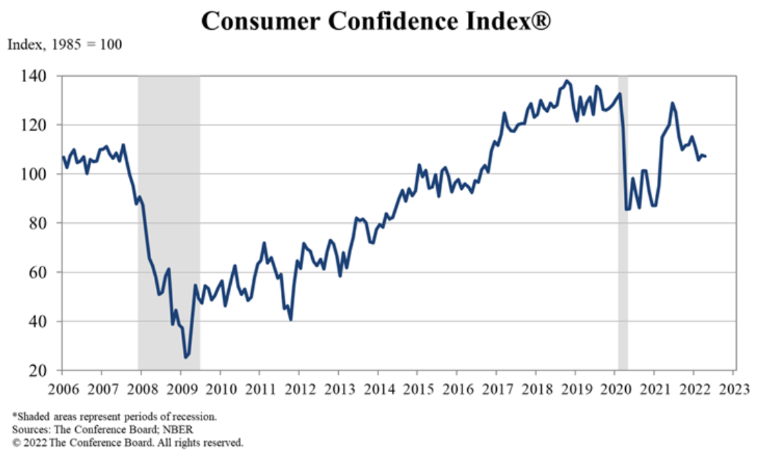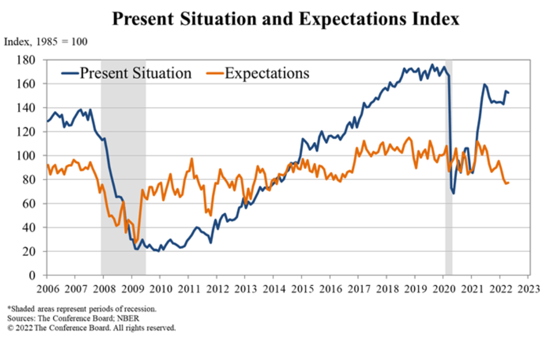 “Meanwhile, concerns about inflation retreated from an all-time high in March but remained elevated. Looking ahead, inflation and the war in Ukraine will continue to pose downside risks to confidence and may further curb consumer spending this year,” wrote Lynn Franceo, Senior Director of Economic Indicators at the Conference Board, in the note accompanying the release