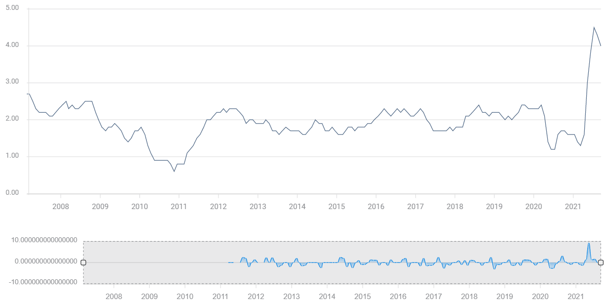 Inflation will withdraw from the highs of June and July but it is not going to return to the Fed’s 2% target anytime soon. The longer price increases continue at an elevated level the greater the damage to consumer spending and the more embedded will become inflation expectations.