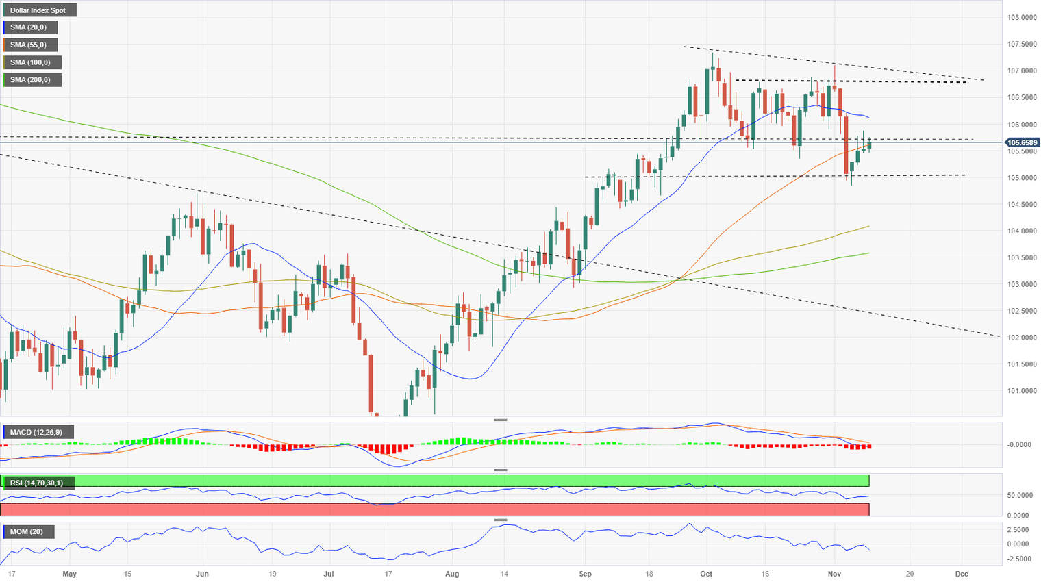 The US Dollar Index (DXY) is currently rebounding after reaching levels below 105.00, for the first time since mid-September. The current recovery can be seen as a correction of the decline from 107.10 (November 1 high).