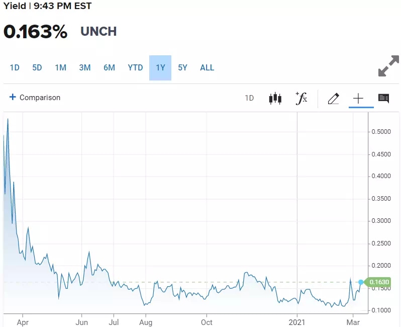 Two-year Treasury rates are but four basis points higher at 0.163% (March 8 close) from their New Year open in January.