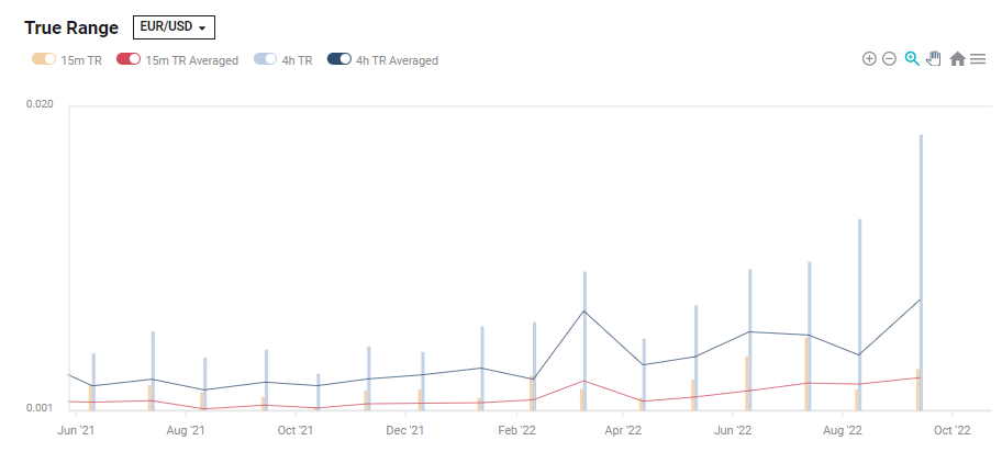 Even if you do not buy the full explanation above, a quick look at this EUR/USD true range graph shows how the response to data is growing: