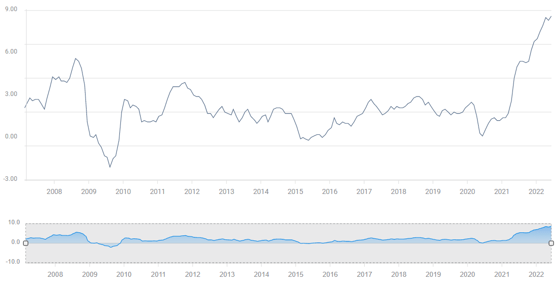 The relentless increase in prices and the concomitant contraction of purchasing power, directly threaten the consumer base of the US economy. Sooner or later, and logically sooner is fast approaching, American households will be forced to pull back on discretionary spending as food, energy and shelter costs drain family budgets. With the economy expanding at just 0.9% in the second quarter, according to the Atlanta Fed’s latest estimate, a small drop in consumption could drive GDP into contraction, ensuring a recession in the first half of the year.