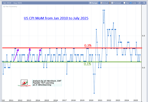Core CPI rises to 0.3% if it remains above 0.1% for a couple of months since April 2011 except on a few occasions where it cooled down.