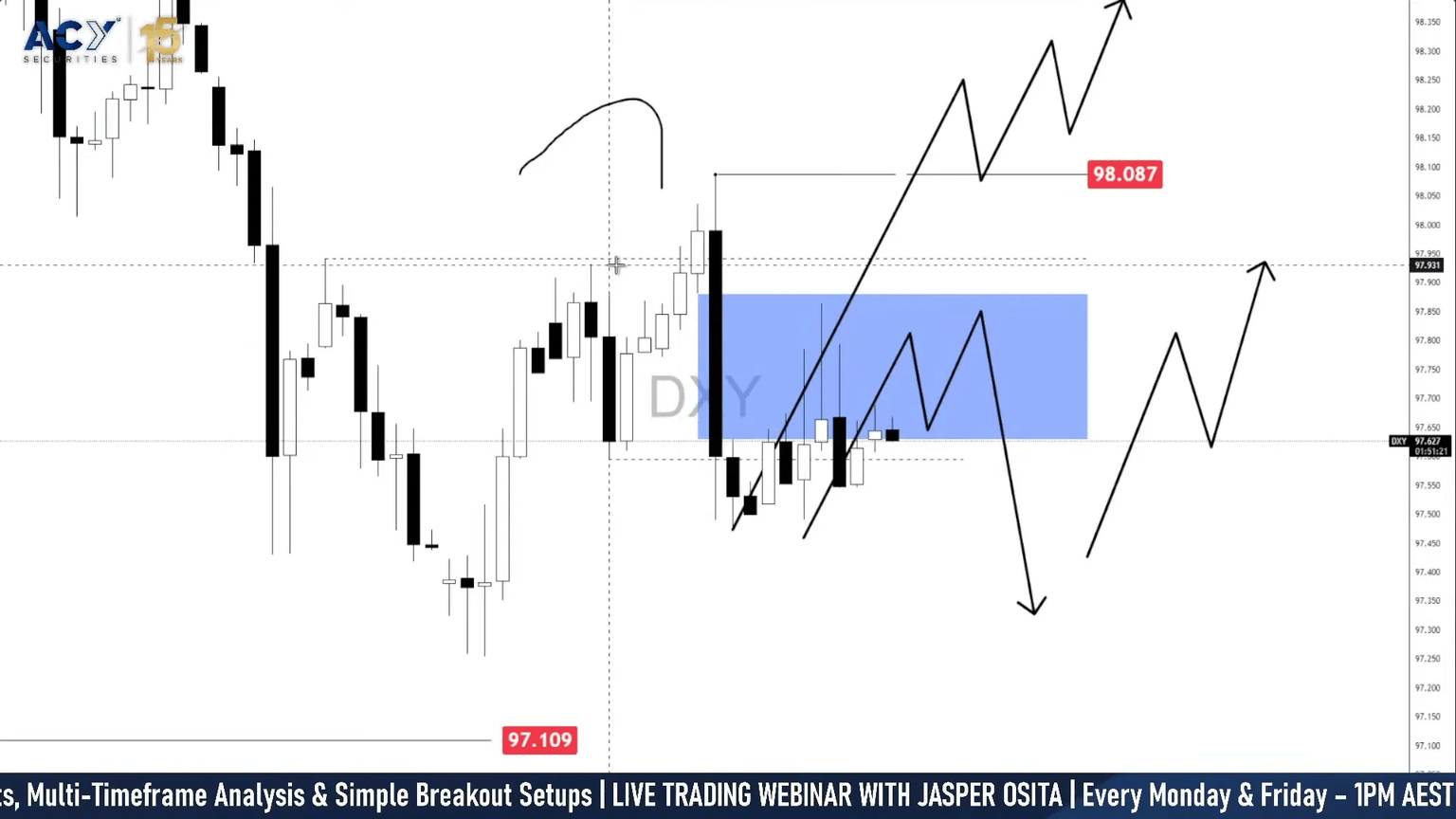 - Break and close above 97.80 unlocks 98.00–98.10, setting up a pre-FOMC squeeze.