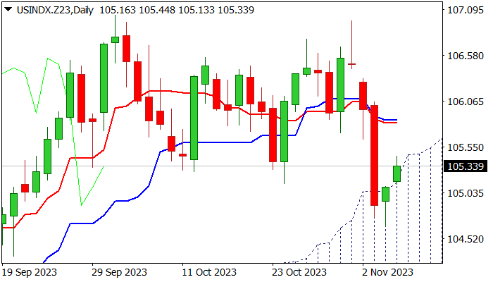 Sharp pullback, which started from Monday’s gap-lower opening and subsequent strong acceleration, lost traction on attempts to sustain penetration of rising thick daily cloud, with oversold conditions prompting traders to collect some profits and pushing the price higher.