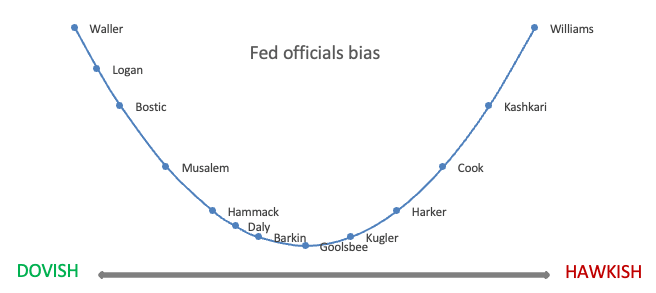 Let's take a look at the latest comments from many Fed rate setters as well as their likely bias: