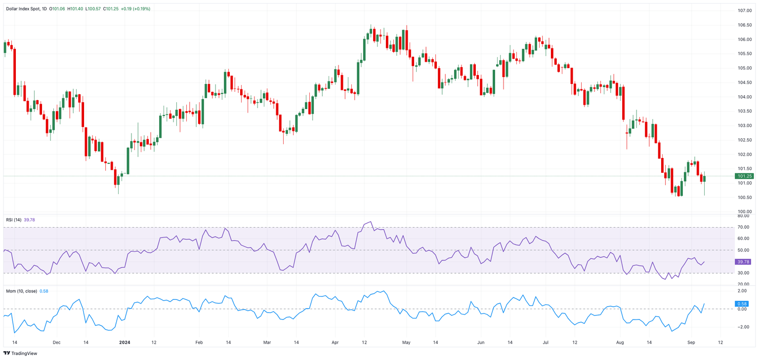 The chances of continued downward pressure on the US Dollar Index (DXY) have risen after it broke decisively below the important 200-day Simple Moving Average (SMA), currently positioned at 103.90. If the bearish momentum continues, the DXY could first target the 2024 low of 100.51, recorded on August 27, and then the psychologically important 100.00 level.