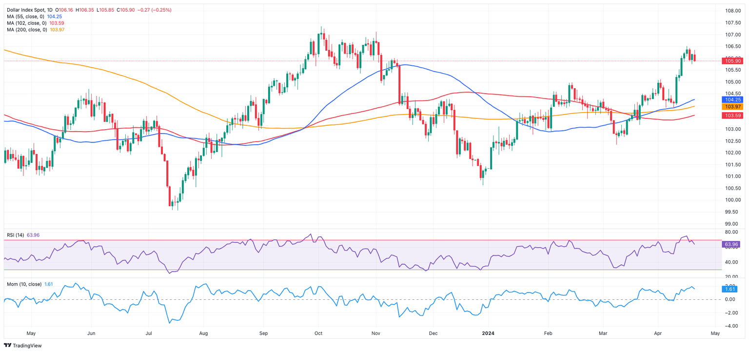 The Greenback ended the week barely changed after the sharp increase recorded in the previous one, despite hitting new five-month peaks in the boundaries of 106.50 when tracked by the USD Index (DXY) on April 16.