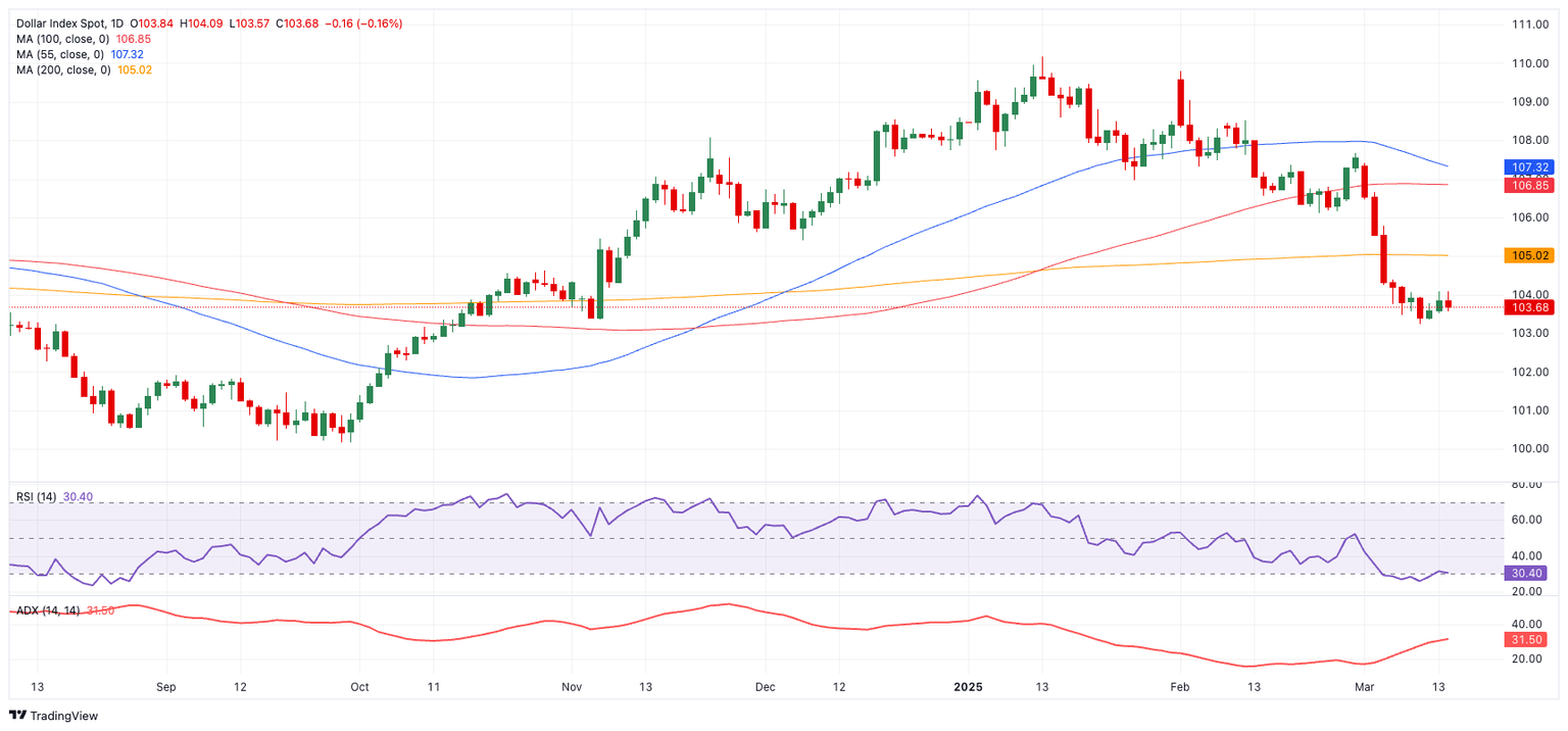The US Dollar (USD) remained on the back foot for the second consecutive week, dragging the US Dollar Index (DXY) to fresh five-month lows in the 103.25-103.20 range on March 11. So far, this zone has provided initial support, slowing the sell-off’s momentum.
