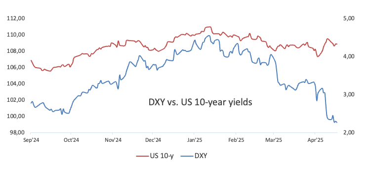 For now, this mix of elevated inflation fears, persistent uncertainty around tariffs, and weakening fundamentals is likely to keep the dollar on shaky ground, with volatility remaining a key theme in the weeks ahead.