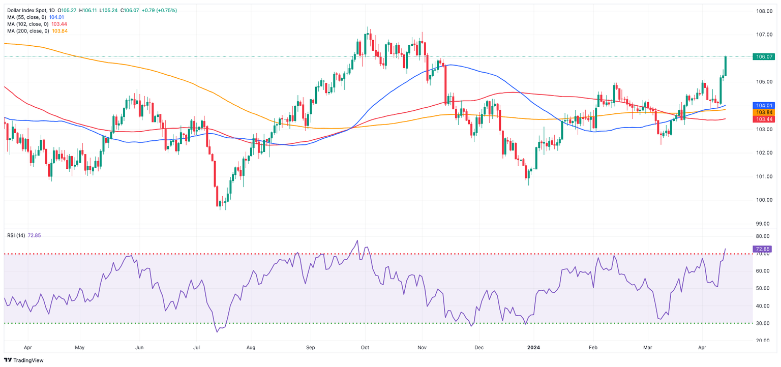 - The USD Index (DXY) hit fresh tops around 106.00.