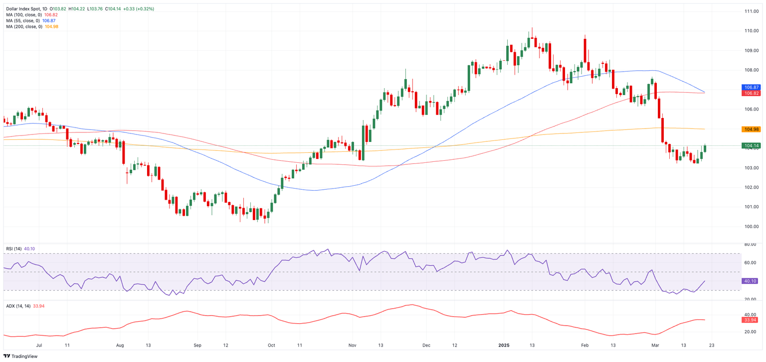 Technically, the US Dollar Index (DXY) remains below its crucial 200-day simple moving average (SMA) at 104.94, reinforcing a bearish bias.