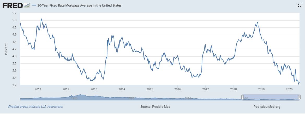 The cost of a 30-year fixed rate mortgage, the most popular US home financing averaged 3.30% in April the lowest on record. Rates have fallen steadily since mid-March as the Federal Reserve purchase program, $200 billion of which is dedicated to mortgage-backed securities and the bank’s drive to lower interest costs across the economy have pushed Treasury rates to all-time lows in several durations.