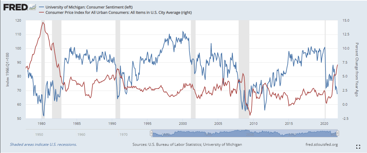 The US economy is beginning to show signs of a slowdown. Retail Sales finished the old year with a sharp drop in December. Initial Jobless claims have jumped 43% to 286,000 in the three weeks to January 14. Consumer outlook has been dismal for more than six months. Inflation, that destroyer of purchasing power and confidence, is at 7%, its highest level in four decades with no sign of relenting.