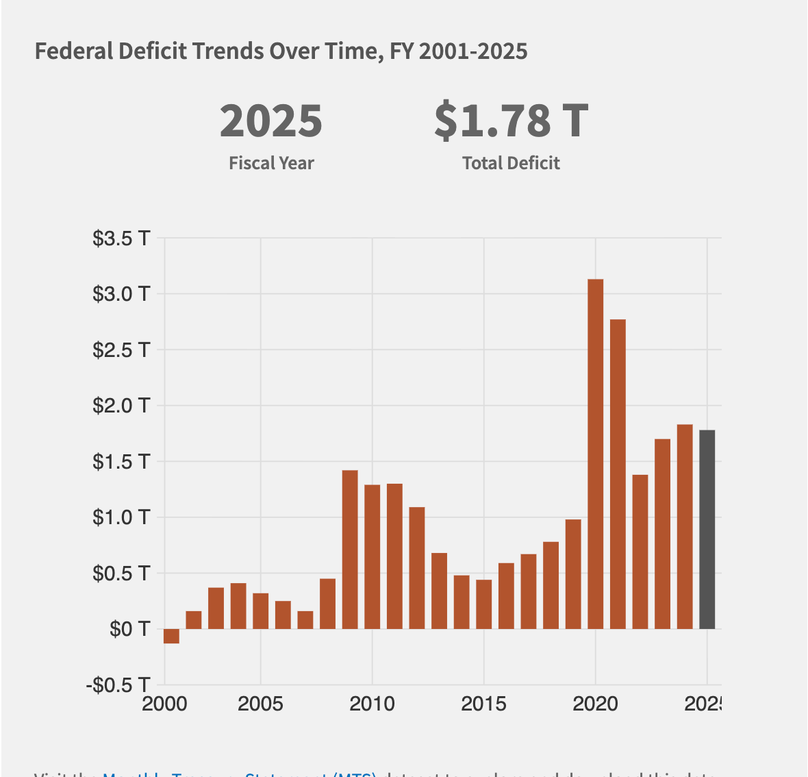 That compares to a $1.82 trillion deficit in fiscal 2024.