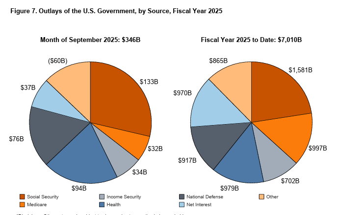 Net interest (interest expense – interest receipts) stands at $970 billion in fiscal ‘25.