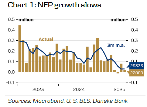 The labour market has cooled towards late summer, yet underlying resilience persists as recent trends appear to be supply-driven. In August, nonfarm payrolls (NFP) rose by 22k (cons: 75k), while downward revisions erased 21k jobs from the prior two months. This extended the weakening trend seen in the surprising July jobs report, which featured significant downward revisions and marked the weakest three-month-average for job creation since the pandemic (chart 1).