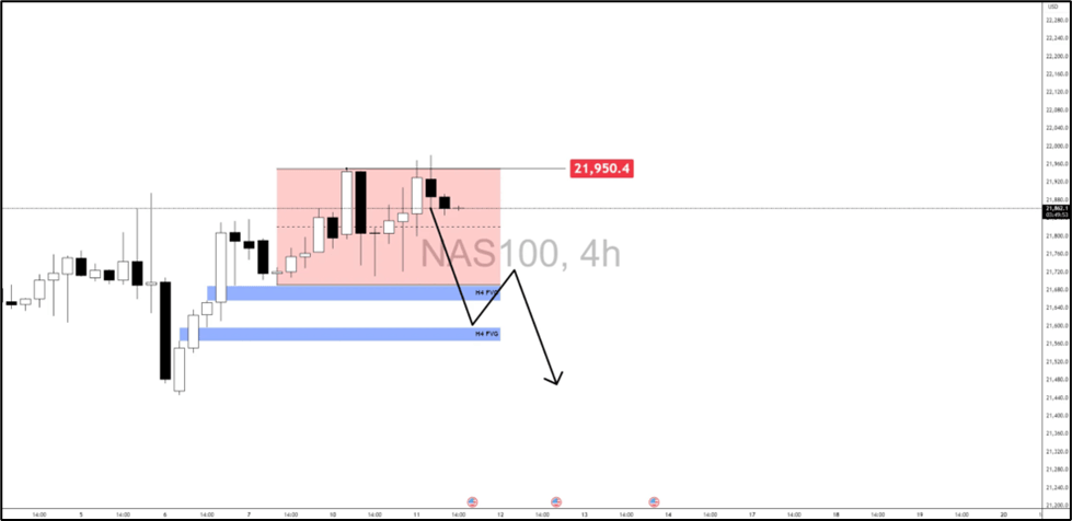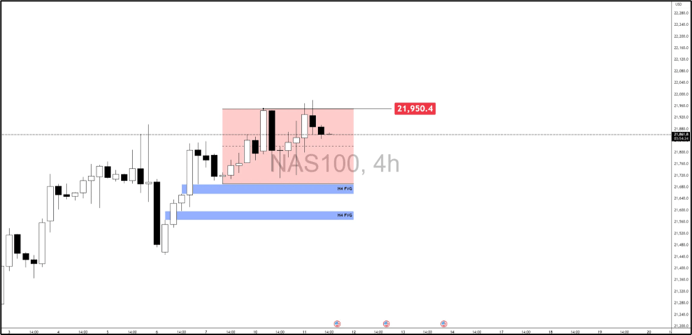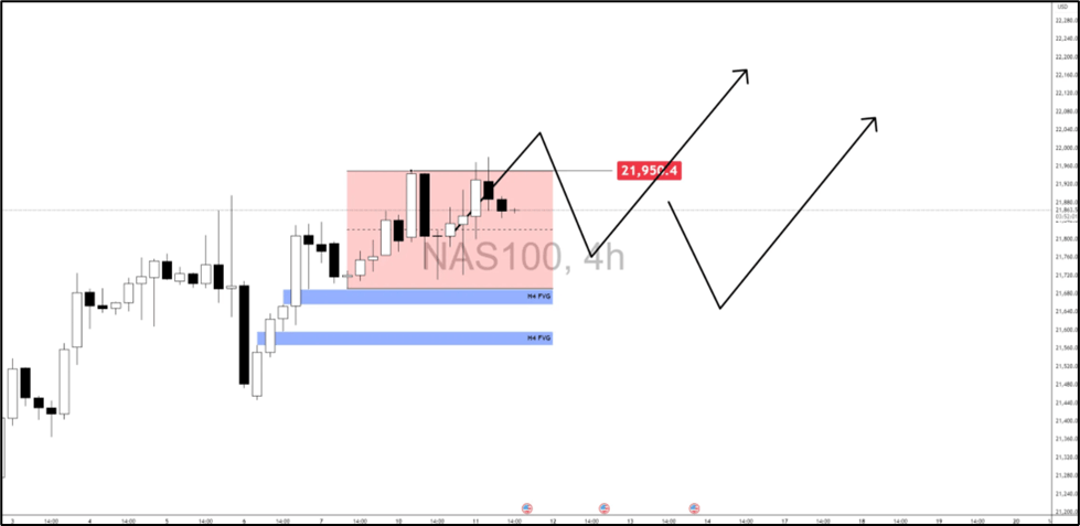 - Nasdaq 100 eyes breakout above 21,950 or drop into lower FVGs.