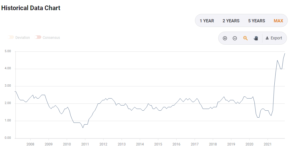 Headline CPI rose by 6.8% YoY in November, the highest since the early 1980s, while Core CPI – excluding volatile food and energy prices – hit 4.9% yearly. That core figure is substantially above the Federal Reserve's average target of 2%. The longer it lasts the harder it becomes to convince the public that current inflation compensates for previous weak price rises.