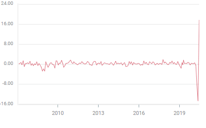 Retail sales were much better in May than anticipated, reversing their record April losses with their largest increase in history. Overall sales jumped 17.7% after falling 14.7% and the control group GDP component rose 11% following the April 12.4% plunge.