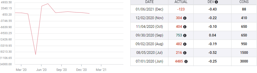 December employment numbers from the private payroll company Automatic Data Processing (ADP) were much worse than expected with a loss of 123,000 positions instead of the predicted gain of 88,000.