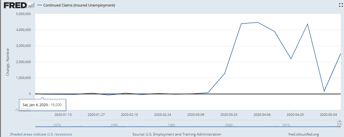 Continuing claims run one week behind the initial figures and if people are returning to work in large numbers this number is expected to reverse as rehires outpace further layoffs.